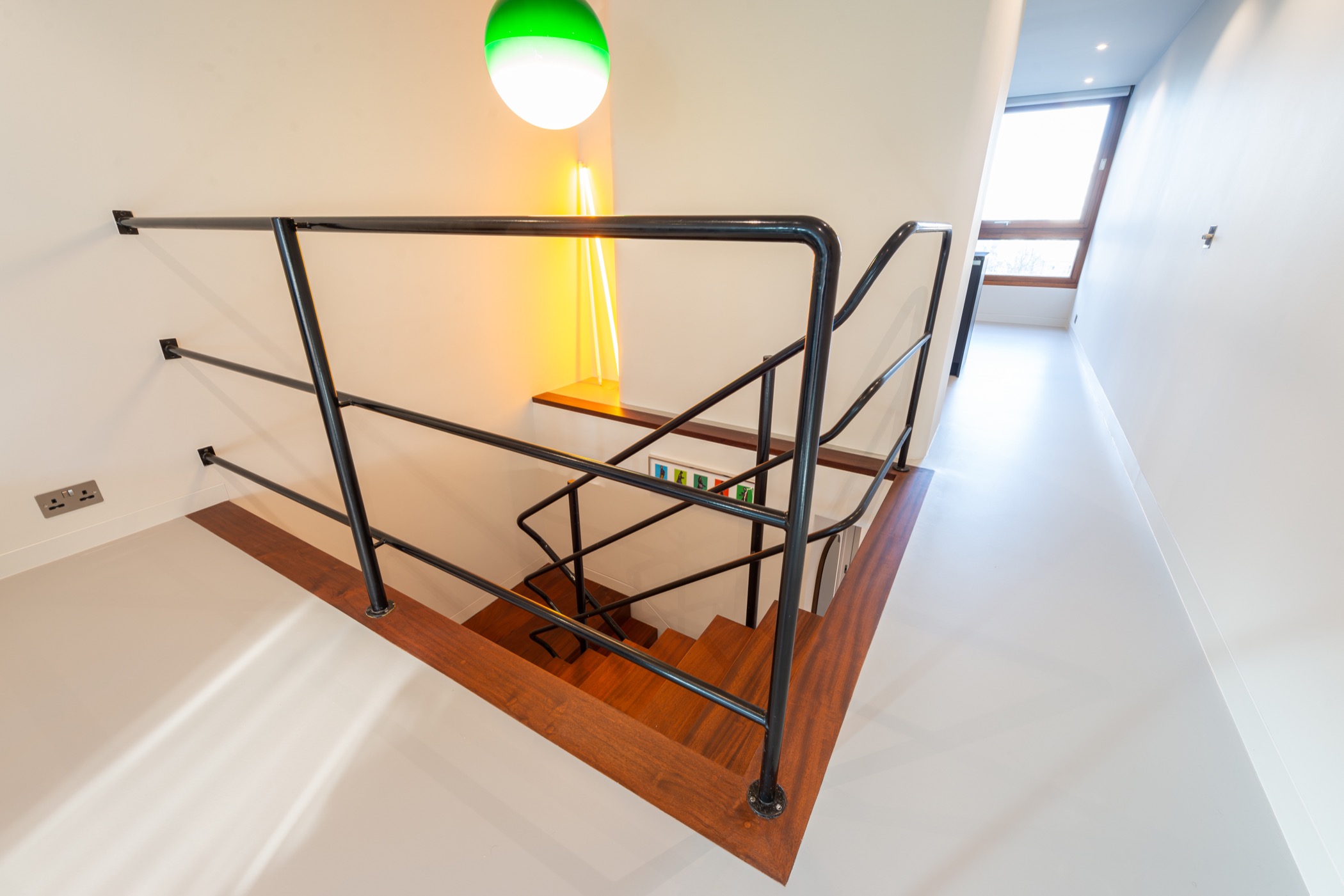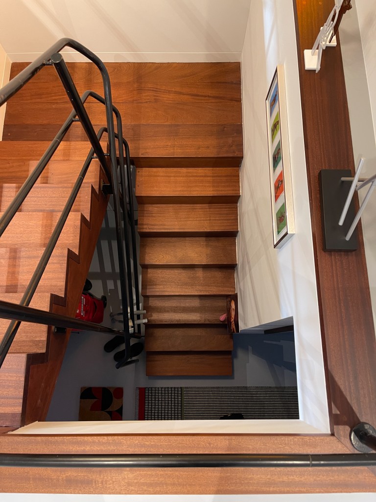 Leading to the upper floor, our exceptionally skilled French polisher meticulously restored the structurally sound, but age-worn original mahogany staircase to its former glory.