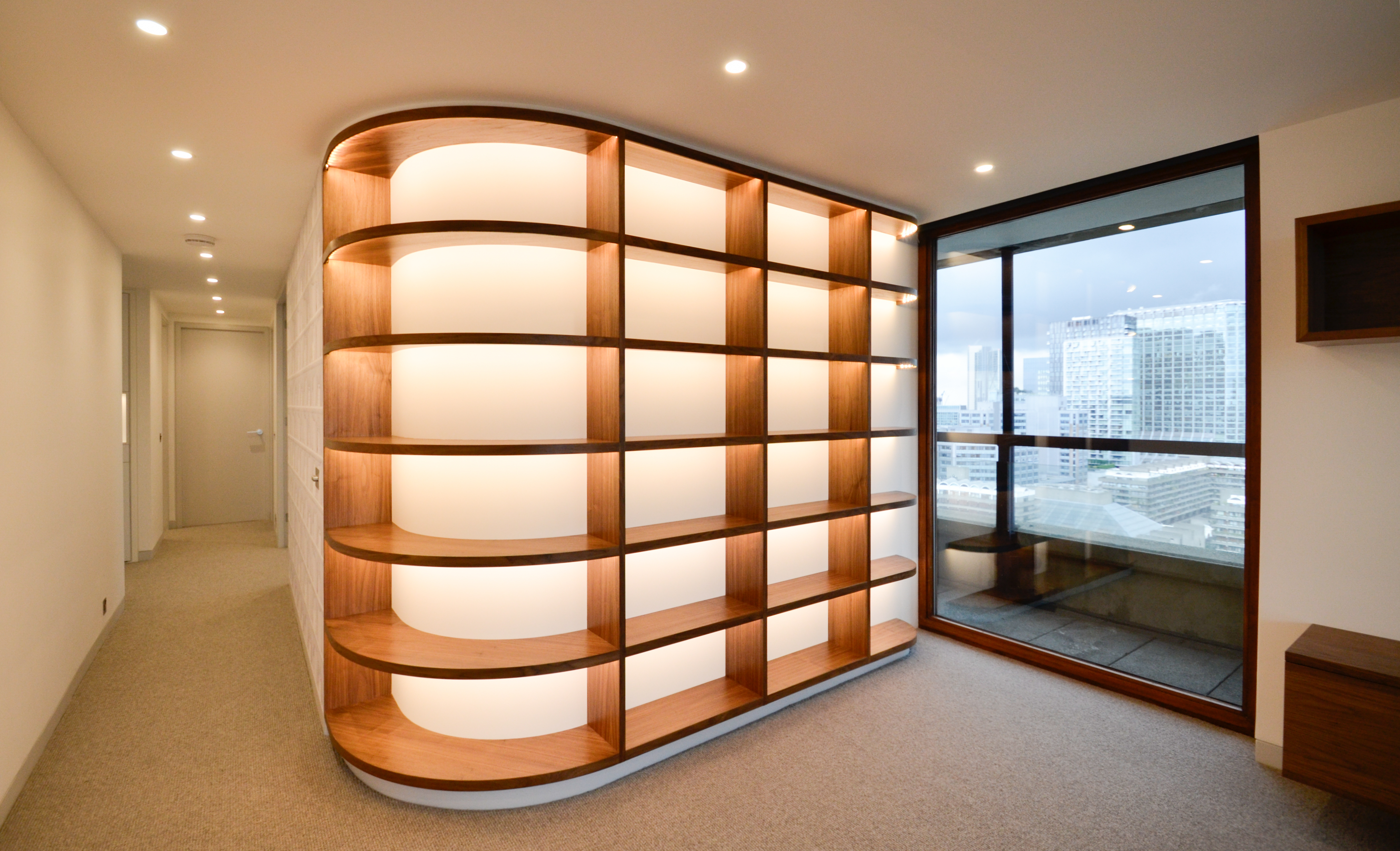 Similar to the LED lighting strips, we also create bespoke LED-lit display shelves, adding both practicality and aesthetic appeal, subtly highlighting key architectural and decorative elements within the space.