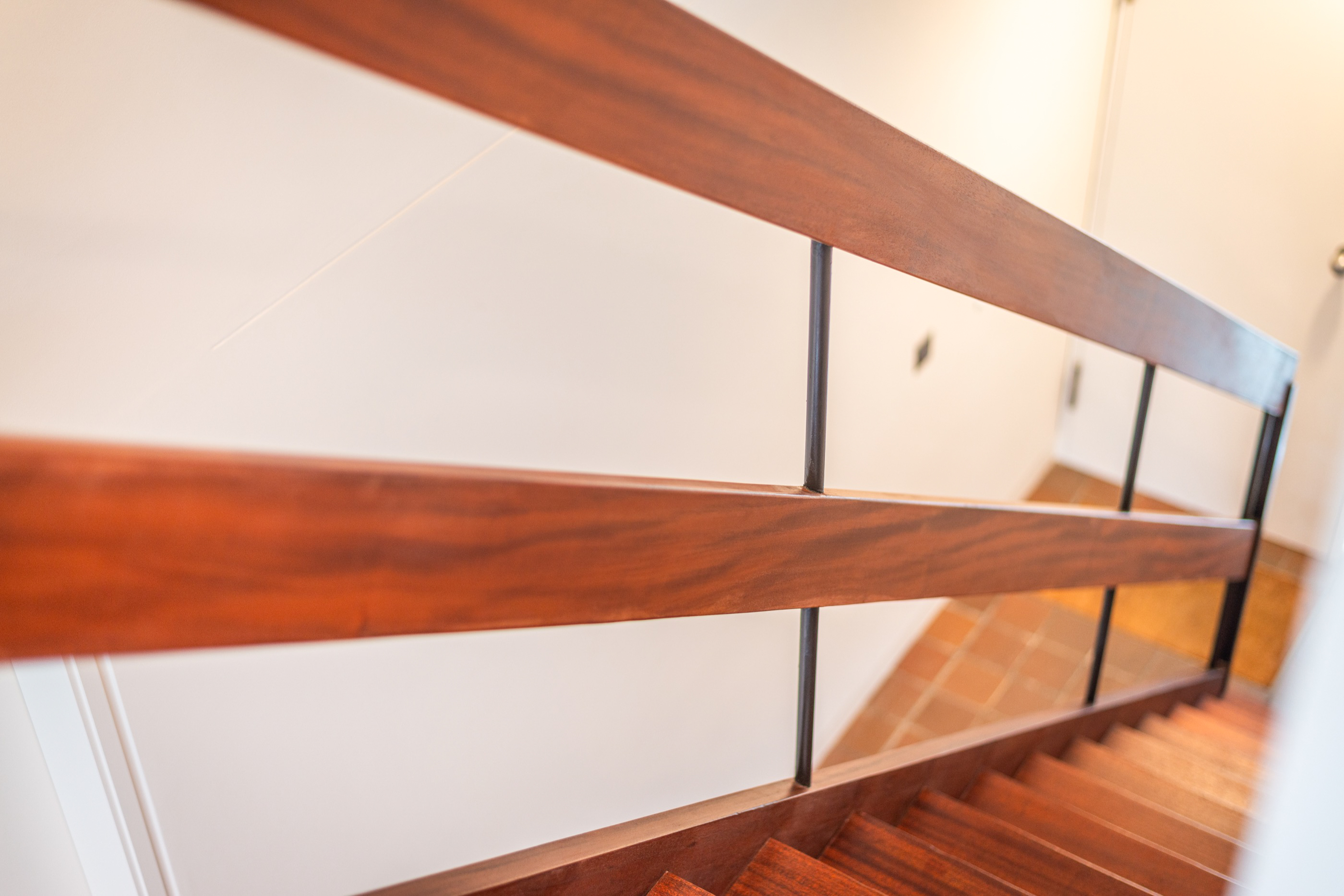 We carefully restore the original wood stair treads, railings and coated metal railings found in Barbican properties, preserving their character while enhancing durability. The wooden handrails are meticulously sanded, repaired, and refinished to match their original warmth and grain. Meanwhile, the coated metal railings are stripped, treated, and refinished to restore their sleek appearance while maintaining their protective coating. Our approach ensures these iconic features retain their historical integrity while seamlessly blending with modern interiors.