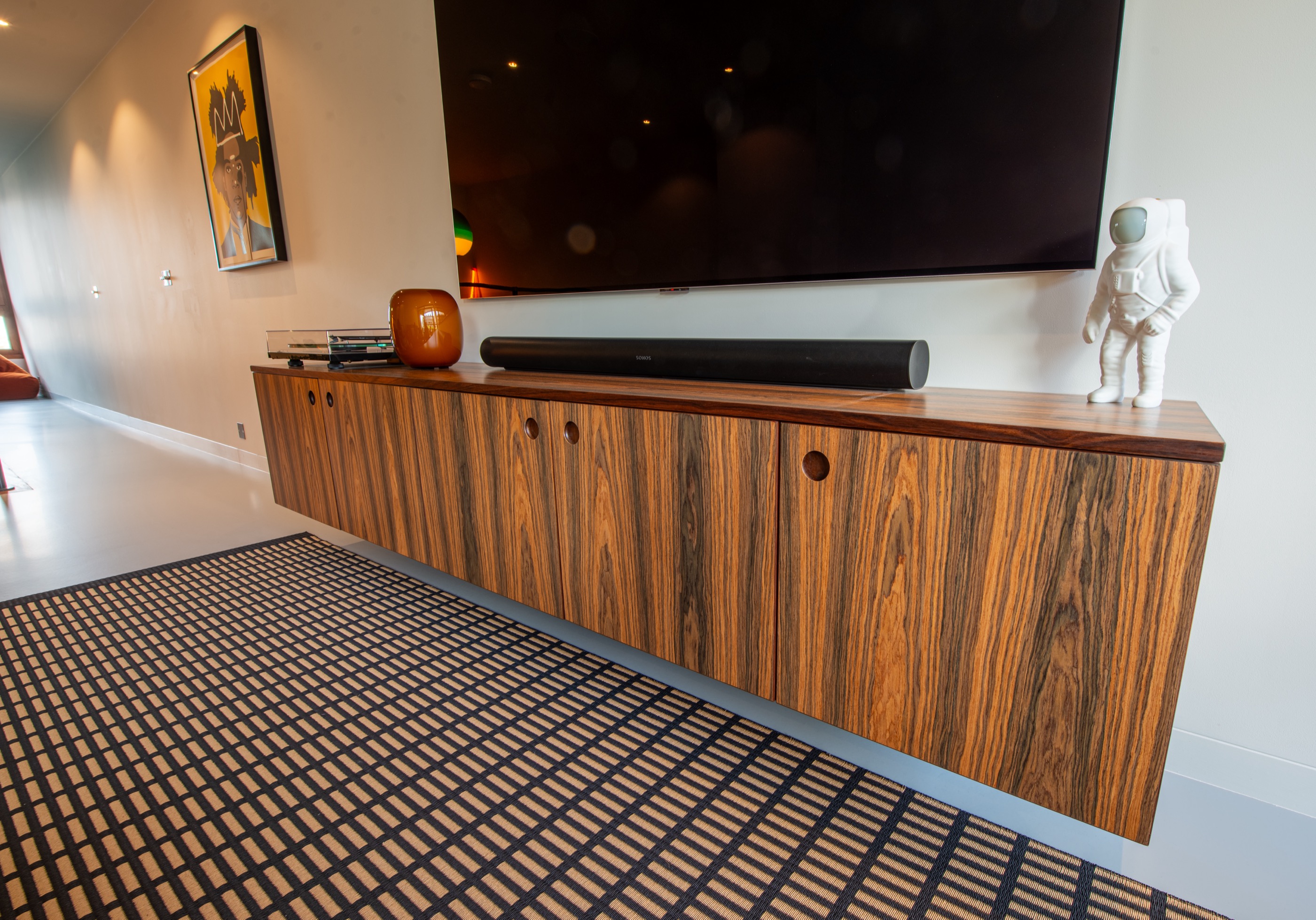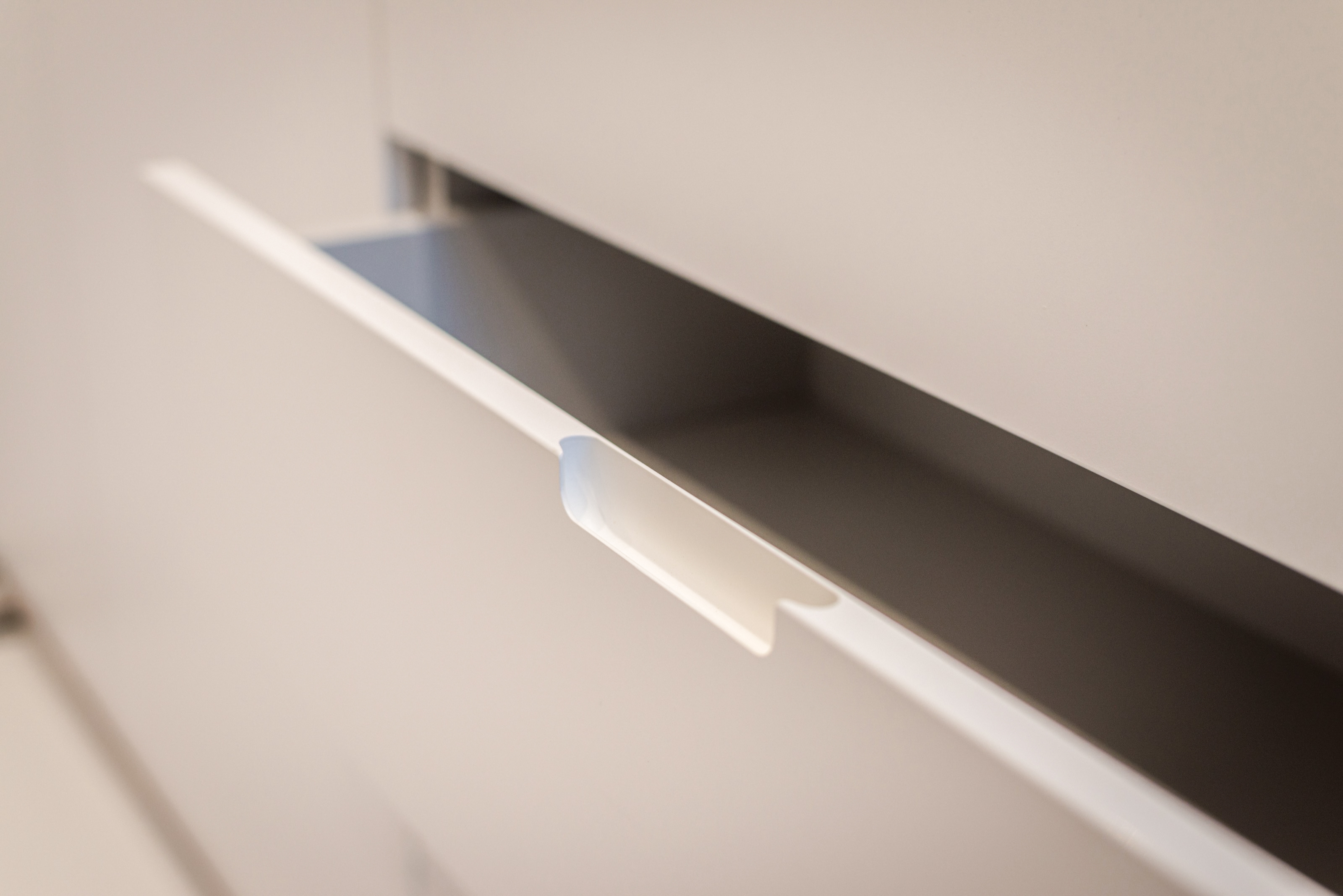 Every detail, from the sleek lines of recessed pulls to the sculptural form of gravity handles, is meticulously considered, ensuring our bespoke furniture complements the architectural style of our projects.